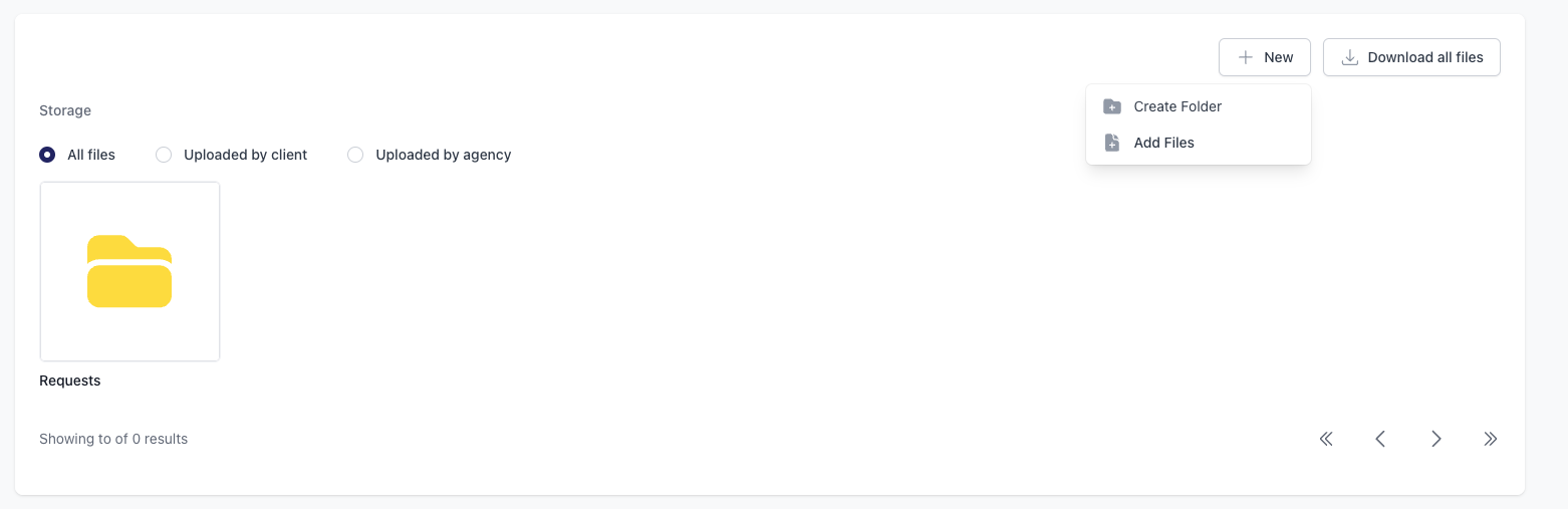 Please note: The storage function is client-facing and for your use, and your Designers/Project Managers will not be able to add, remove, or edit files from the storage. The design team will only be able to download files from storage to use directly for design requests.